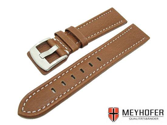 Watch band "Berlin" 24mm brown grained surface white stitching by MEYHOFER (width of buckle 22 mm)