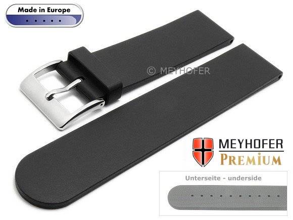 Watch strap "Aracena" 22mm black caoutchouc smooth matt by MEYHOFER (width of buckle 22 mm)