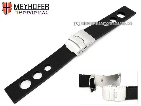Watch strap "Lervik" 22mm black silicone racing look with clasp by MEYHOFER