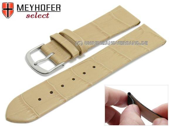Watch strap -Pensacola- 16mm clip lug attachment beige leather alligator grain by MEYHOFER (width of buckle 16 mm) - Bild vergrößern