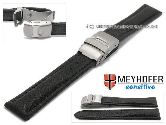 Watch strap "Stralsund" 24mm black titanium clasp grained stitched by MEYHOFER (width of clasp 22 mm)