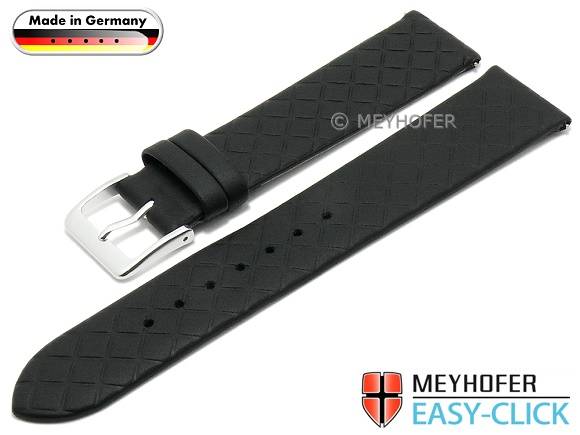 Meyhofer EASY-CLICK watch strap "Mainz" 16mm black leather diamond pattern without stitching (width of buckle 16 mm)