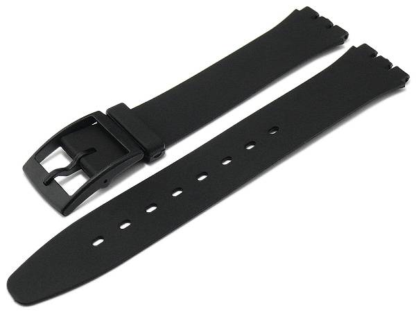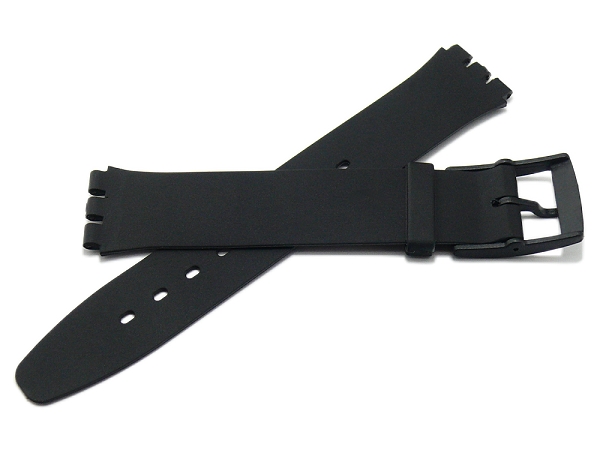 Watch strap "Alpena" 17mm black synthetics smooth suitable for SWATCH by MEYHOFER (width of buckle 16 mm)