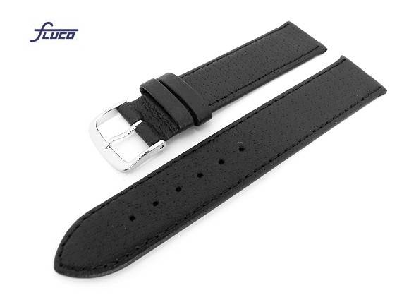 Watch band "Pig" 18mm black pig leather grained surface by Fluco (width of buckle 18 mm)