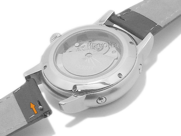 Easy to exchange straps with the EASY-CLICK principle (also Easy Change, Quick Release, Quick Pins) do not require extra spring bars. The special integrated spring bars enable a quick and easy watch strap exchange - exactly to your liking, requirements or taste. Simply slide the visible pin on the watch strap's underside inwards to release the spring bar for fitting or removal - that's it!