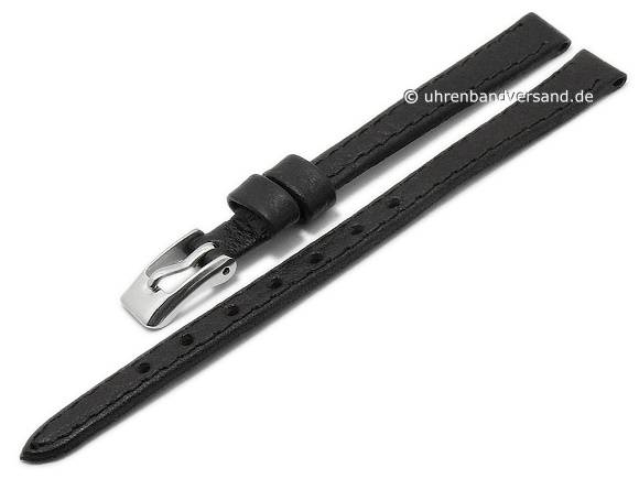Basic watch strap 06mm black leather grained stitched (width of buckle 06 mm)