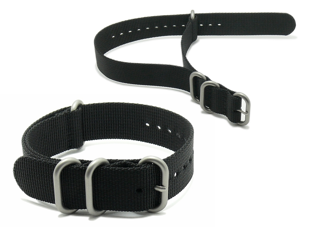 Watch strap "Pasadena" 24mm black synthtic/textile NATO Zulu style 3 metal loops one-piece strap by MEYHOFER