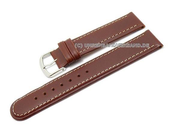 Watch band 24mm brown (natur) saddle leather light stitching by BECO (width of buckle 22 mm)