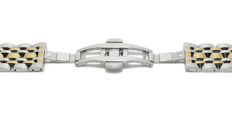 Watch strap "Shanghai" 22mm dual tone golden/silver stainless steel solid polished butterfly clasp by MEYHOFER