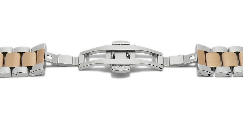 Watch strap "Batavia" 24mm dual tone silver/rosé golden stainless steel solid partly polished butterfly clasp MEYHOFER