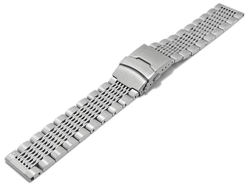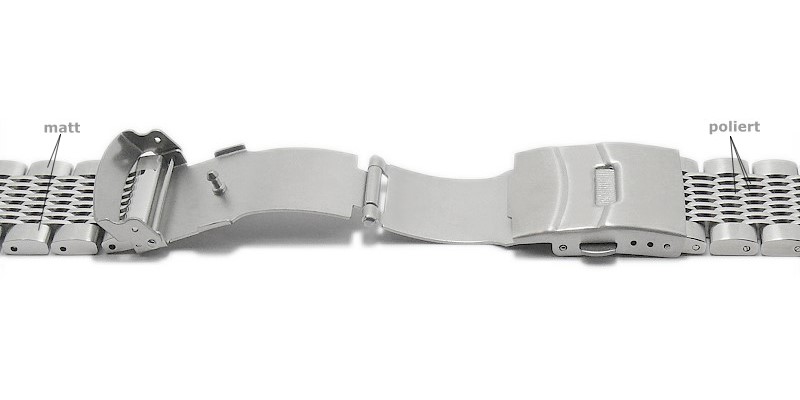 Watch strap 18mm silver stainless steel solid partly polished clasp optionally also with EASY-CLICK