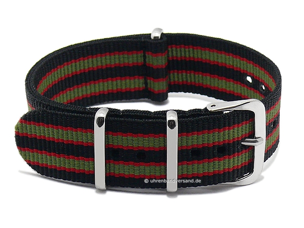 Basic watch strap 20mm black/red/green nylon double layered one piece strap in NATO-style