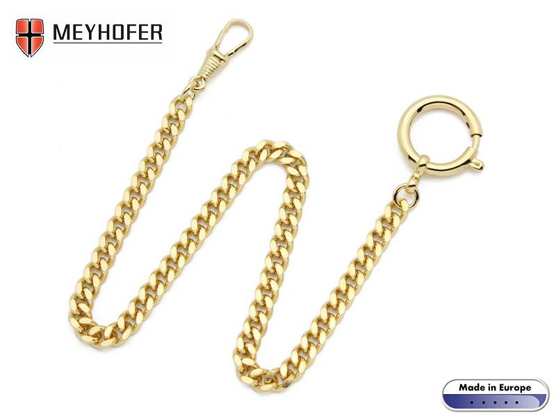 Pocket watch chain "Striesen" golden stainless steel flat curb chain small links by MEYHOFER