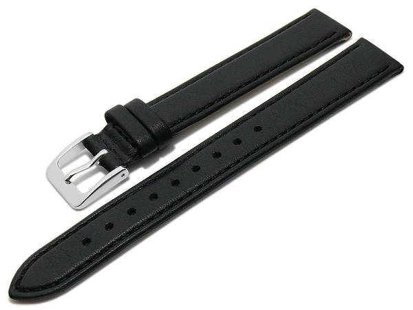 Watch strap "Willingen" 15mm black leather MADE IN GERMANY by Meyhofer optional with Easy-Click (buckle 14 mm)
