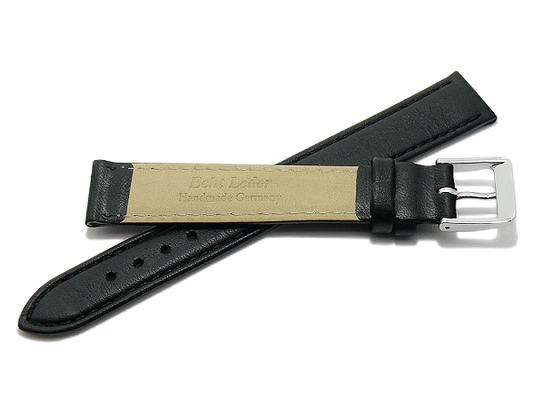 Watch strap -Willingen- 15mm black leather MADE IN GERMANY by Meyhofer optional with Easy-Click (buckle 14 mm) - Bild vergrößern